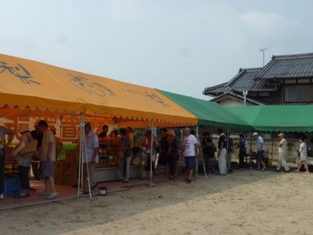 行列のできる臨時直売所。大人気のたてべ梨(東近江市建部堺町の梨園”たてべ大凧果樹生産組合”)の販売が始まっています。